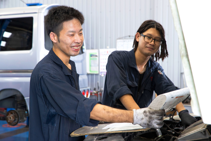 お客様からの厚い信頼を背景に、業績は右肩上がりに成長を続けており、安定した環境で長く働くことができます。社員一人ひとりの頑張りをしっかりと評価する昇給制度や、年2回の賞与を通じて、自身の成長を実感できるはずです。整備という仕事の特性上、確実な作業が求められるため、未経験の方でも安心して業務に取り組めるよう、入社後半年間の丁寧な指導期間を設けています。先輩社員がコミュニケーションを密に取りながら、責任を持って業務を遂行できるよう、丁寧に指導いたします。自動車が好きという気持ちがあれば、まずは資格をお持ちの方、そして未経験の方も、ぜひご応募ください。
